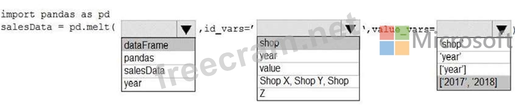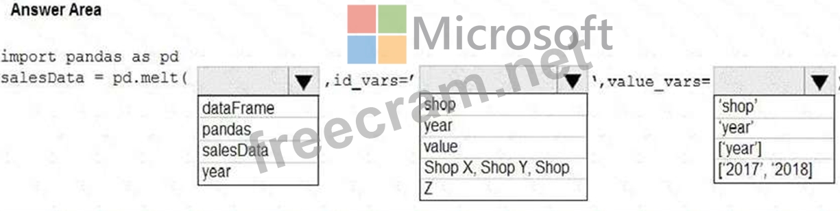 How should you complete the code segment? To answer, select the appropriate options in the answer area.