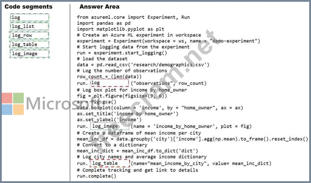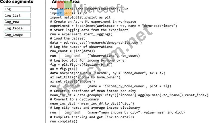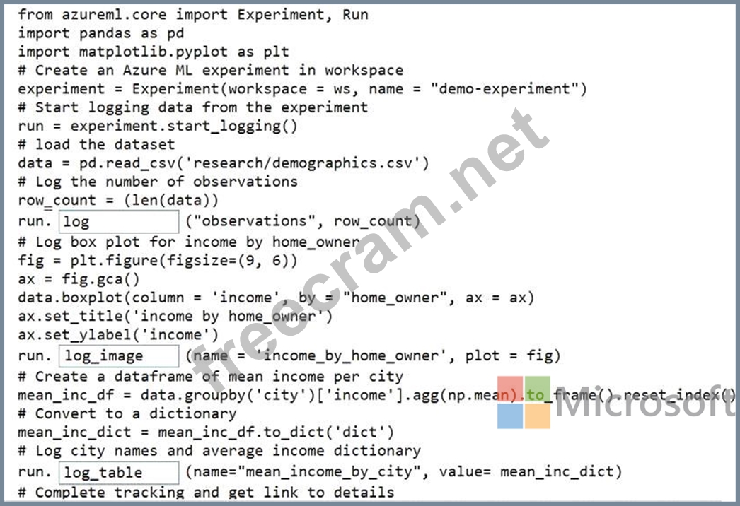 * a dictionary containing the city names and the average income for each city You need to use the appropriate logging methods of the experiment's run object to log the required information.