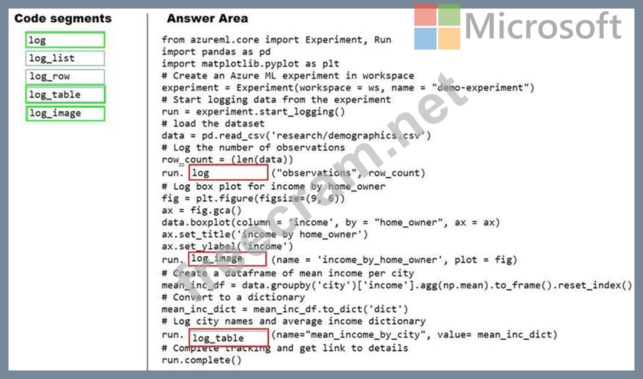 log_image Log an image to the run record. Use log_image to log a .PNG image file or a matplotlib plot to the run. These images will be visible and comparable in the run record.