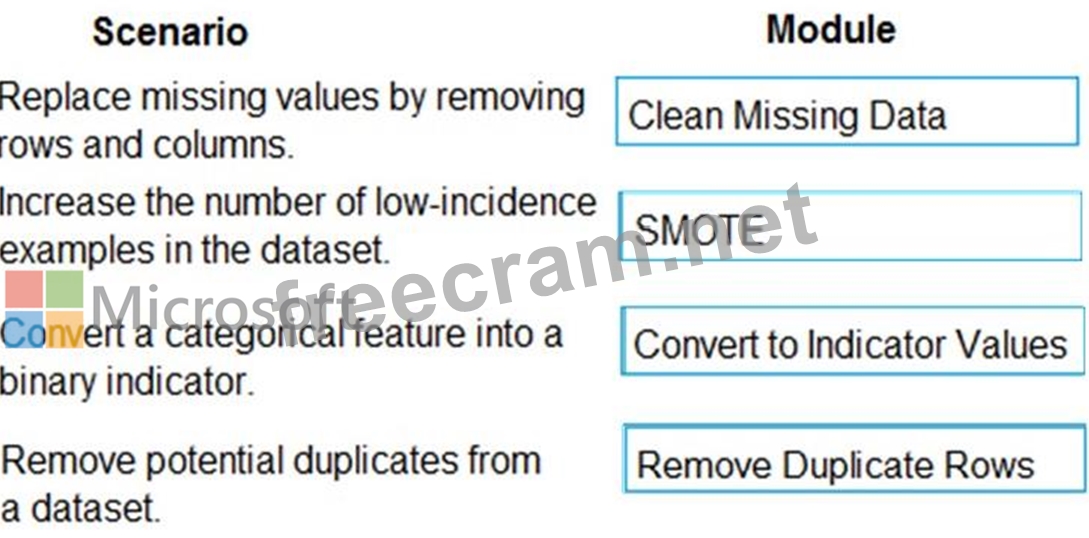 Which modules should you choose? To answer, drag the appropriate modules to the correct scenarios. Each module may be used once, more than once, or not at all.
