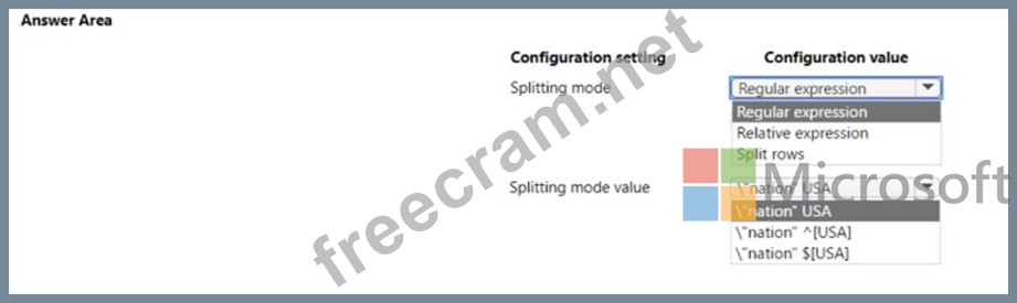 Which configuration values should you use? To answer, select the appropriate options in the answer area.