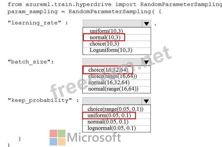 You must define the hyperparameter space to automatically tune hyperparameters using random sampling according to following requirements: