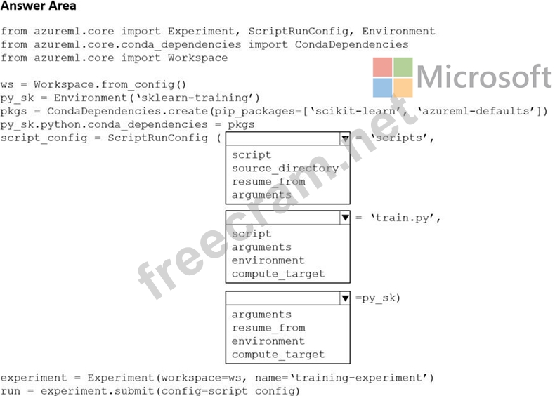 Question 71: You are building an experiment using the Azure Machine Learn...