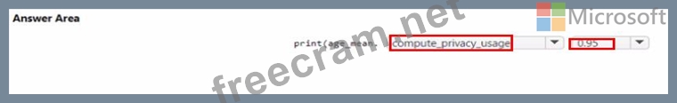 You create an Azure Machine Learning workspace and a dataset. The dataset includes age values for a large group of diabetes patients. You use the dp.mean function from the SmartNoise library to calculate the mean of the age value. You store the value in a variable named age.mean.