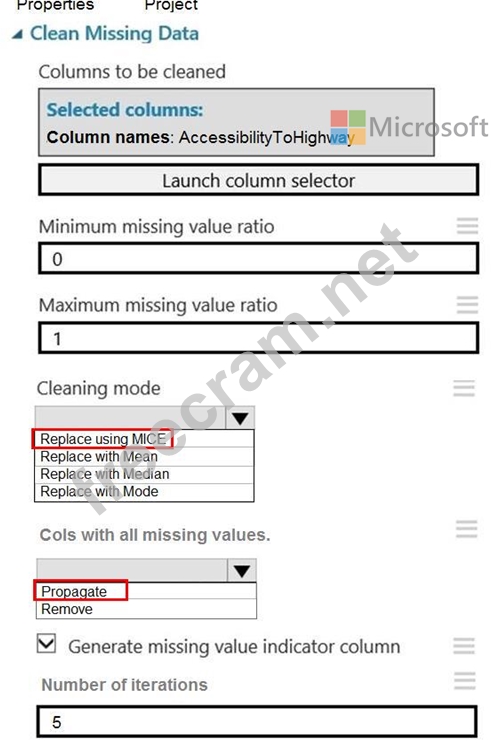 How should you configure the Clean Missing Data module? To answer, select the appropriate options in the answer area.