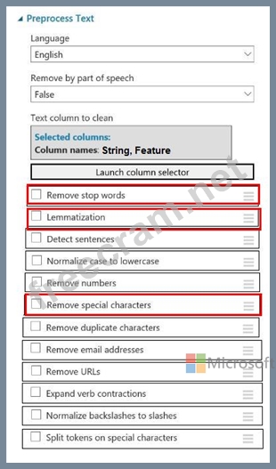 You plan to preprocess text from CSV files. You load the Azure Machine Learning Studio default stop words list.