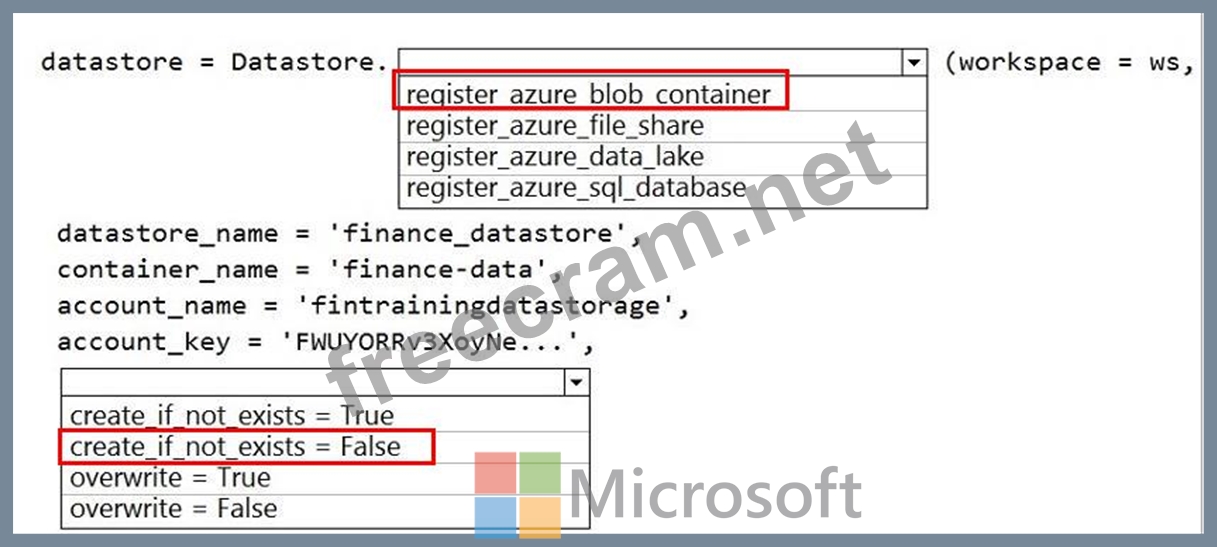 Question 19: You define a datastore named ml-data for an Azure Storage bl...