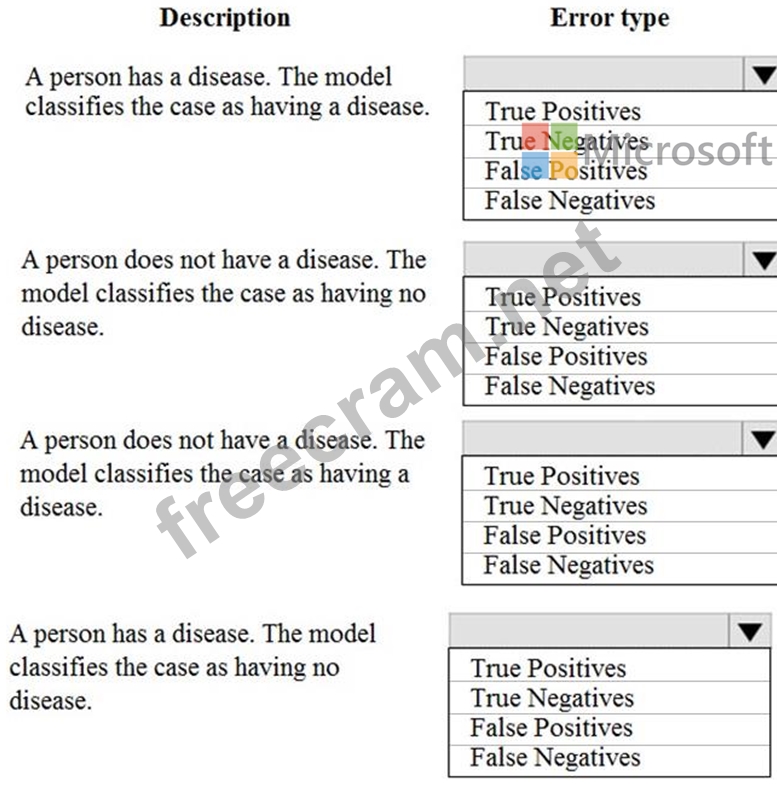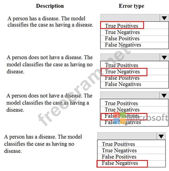 Which error type should you choose for each description? To answer, select the appropriate options in the answer area.