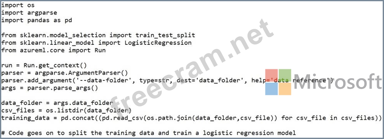 You create a datastore named training_data that references a blob container in an Azure Storage account. The blob container contains a folder named csv_files in which multiple comma-separated values (CSV) files are stored.
