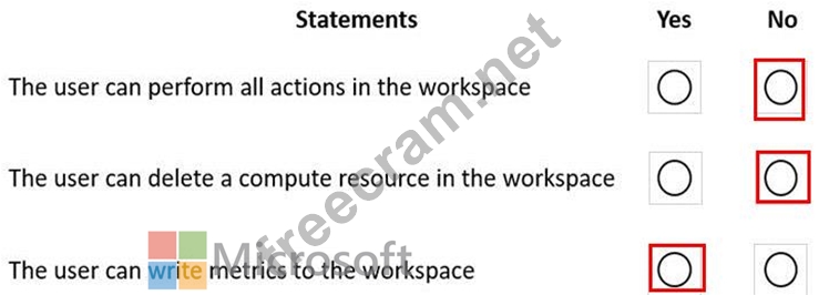 You create an Azure Machine Learning workspace named workspace1. You assign a custom role to a user of workspace1.