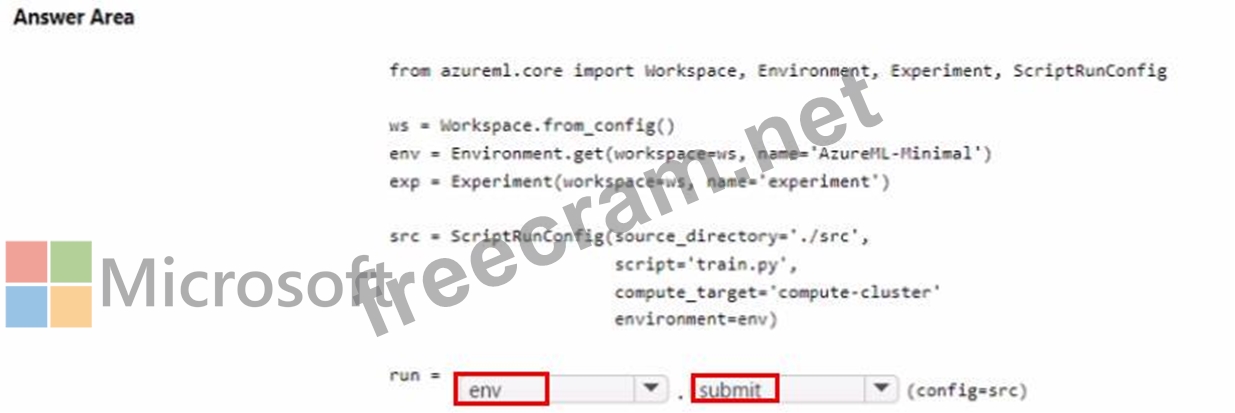 Question 171: You are preparing to use the Azure ML SDK to run an experime...