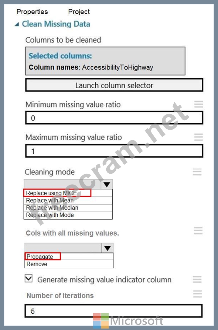 How should you configure the Clean Missing Data module? To answer, select the appropriate options in the answer area.
