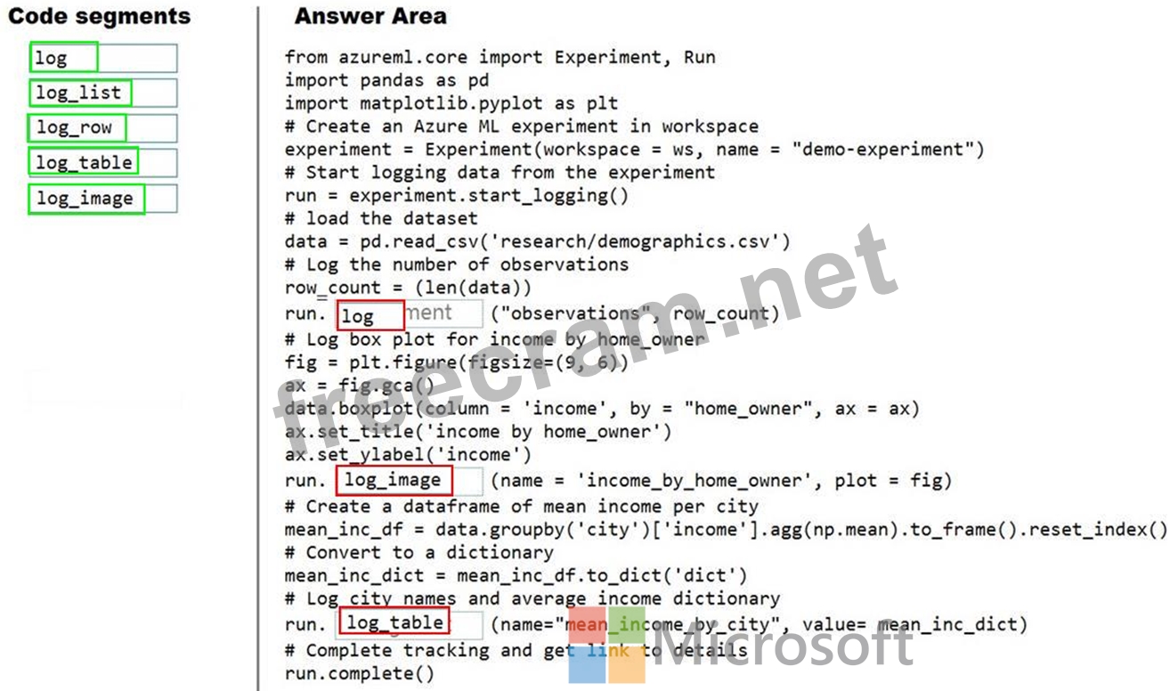 Question 138: You use the Azure Machine Learning SDK in a notebook to run ...