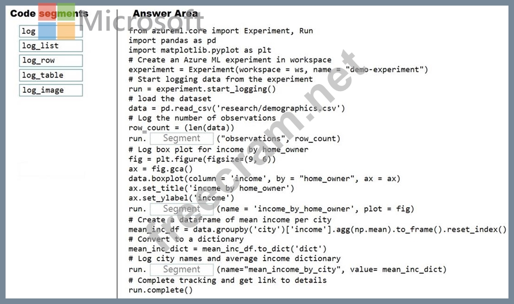 Question 171: You are preparing to use the Azure ML SDK to run an experime...