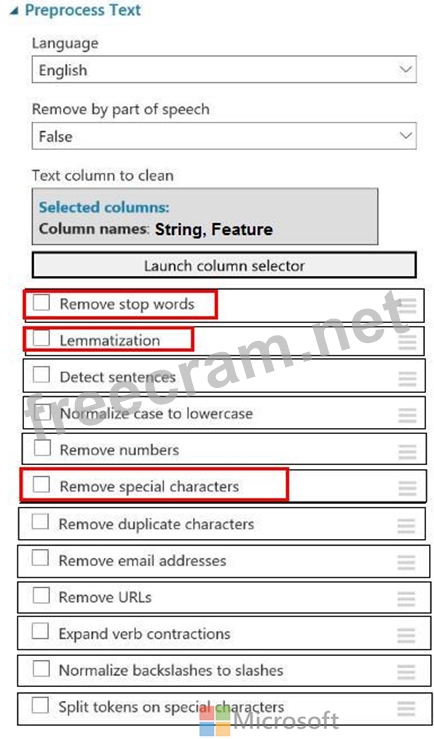 Question 55: You plan to preprocess text from CSV files. You load the Azu...