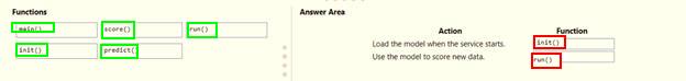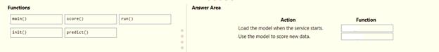 Which functions should you include in the script? To answer, drag the appropriate functions to the correct actions. Each function may be used once, more than once, or not at all. You may need to drag the split bar between panes or scroll to view content NOTE: Each correct selection is worth one point.