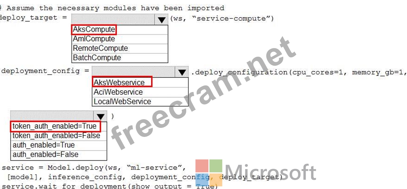 How should you complete the code? To answer, select the appropriate options in the answer area.