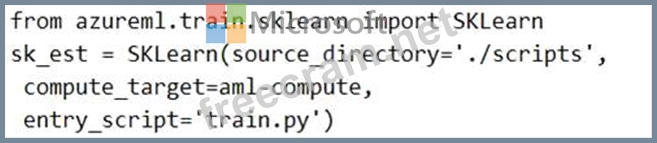You have a Python script named train.py in a local folder named scripts. The script trains a regression model by using scikit-learn. The script includes code to load a training data file which is also located in the scripts folder.