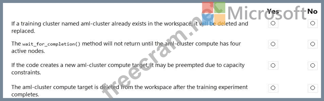 Question 83: You manage an Azure Machine Learning workspace by using the ...