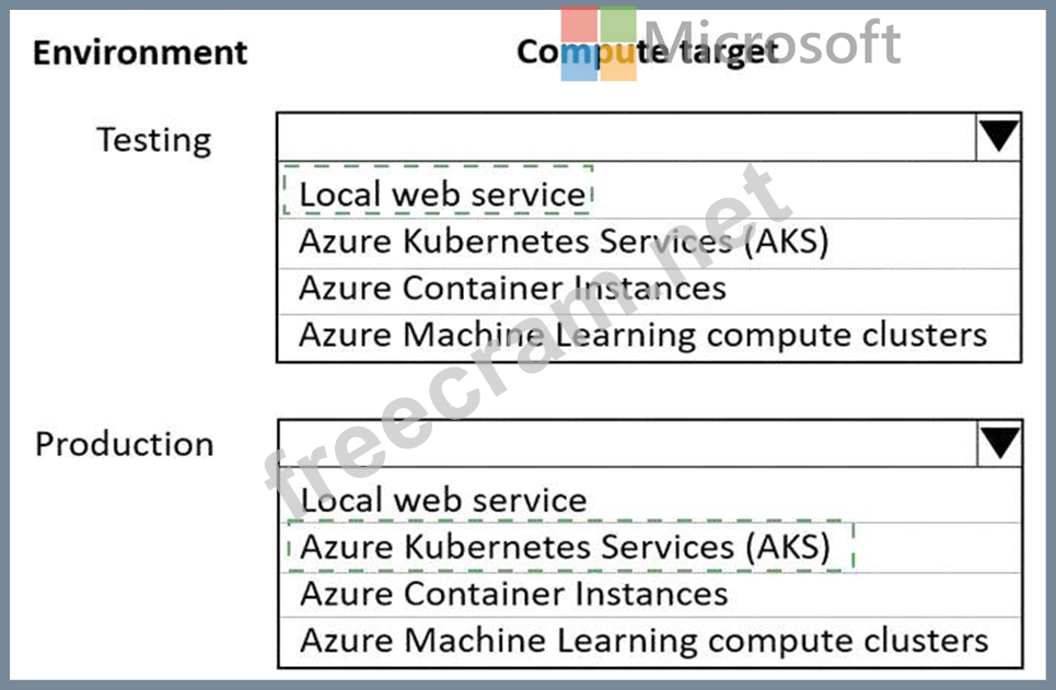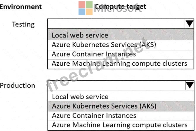 Which compute targets should you use? To answer, select the appropriate options in the answer area.