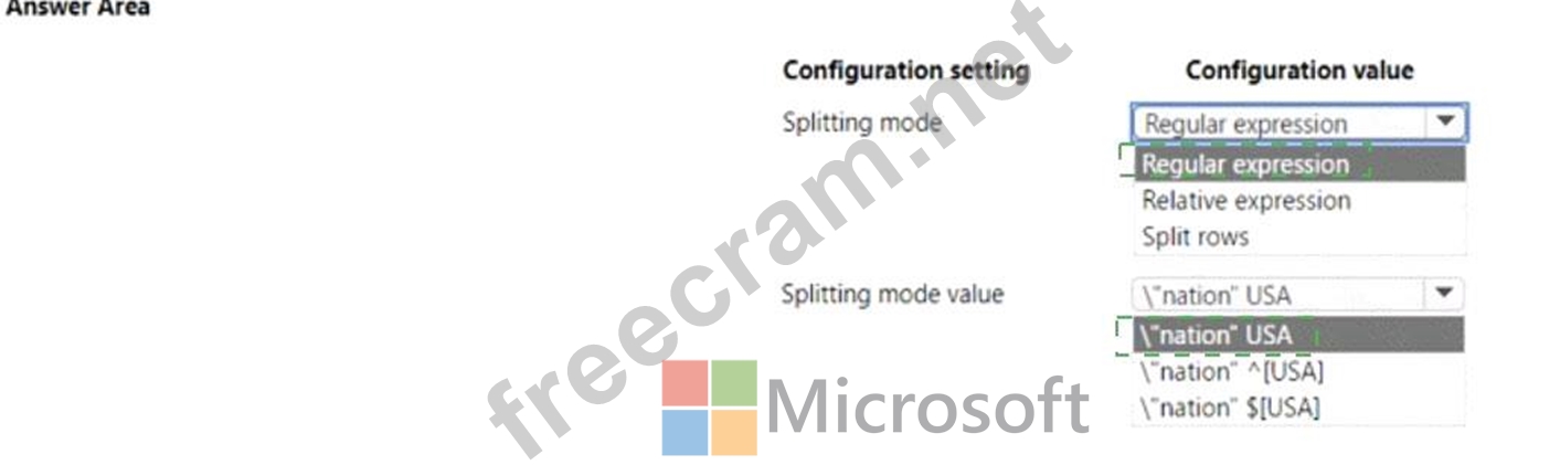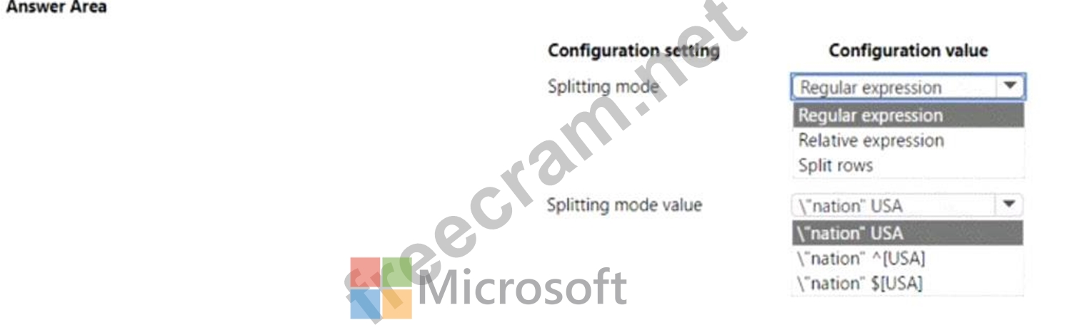 Which configuration values should you use? To answer, select the appropriate options in the answer area.