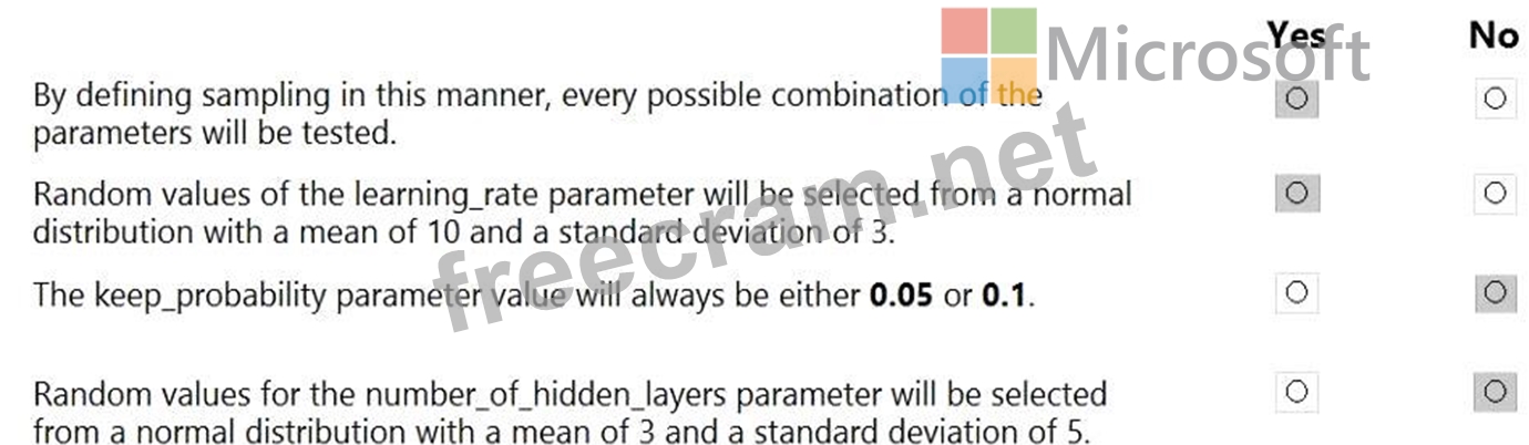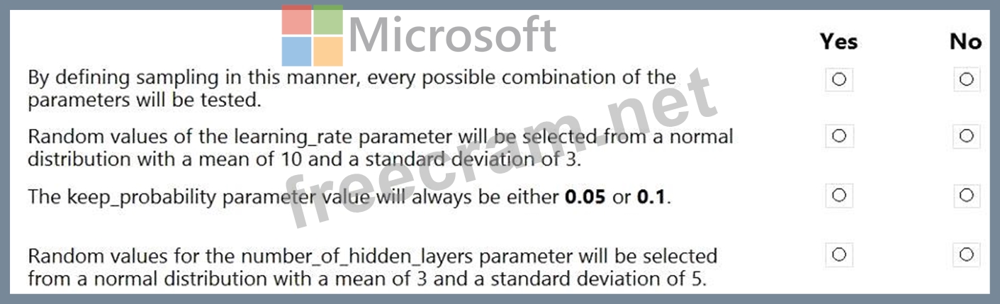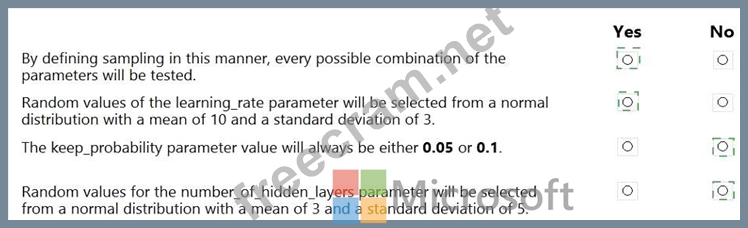 Question 44: You use Azure Machine Learning to implement hyperparameter t...