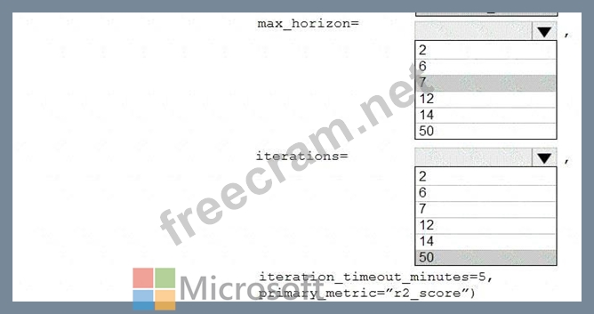 "For the initial round of training, you want to train a maximum of 50 different models." Iterations: The total number of different algorithm and parameter combinations to test during an automated ML experiment.