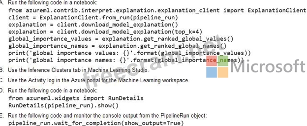 You create a batch inference pipeline by using the Azure ML SDK. You run the pipeline by using the following code: