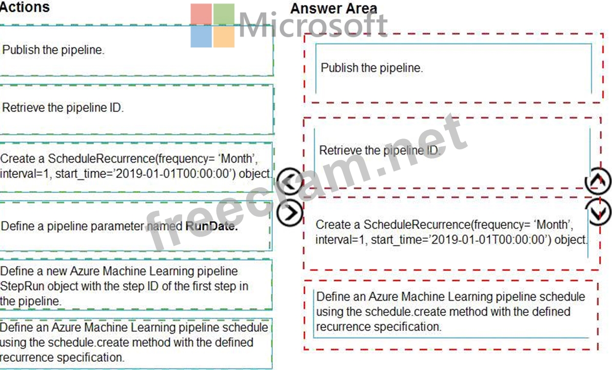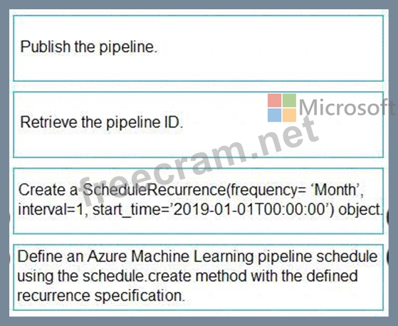 To schedule a pipeline, you'll need a reference to your workspace, the identifier of your published pipeline, and the name of the experiment in which you wish to create the schedule.