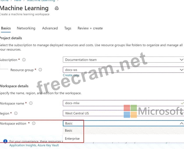C: You can create a workspace for Azure Machine Learning with Azure CLI Install the machine learning extension.