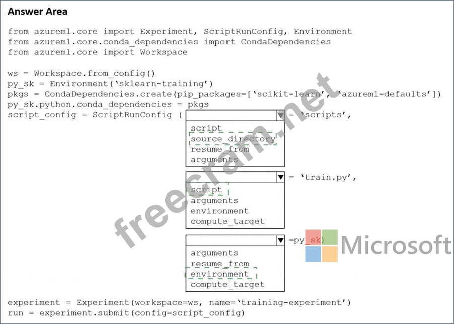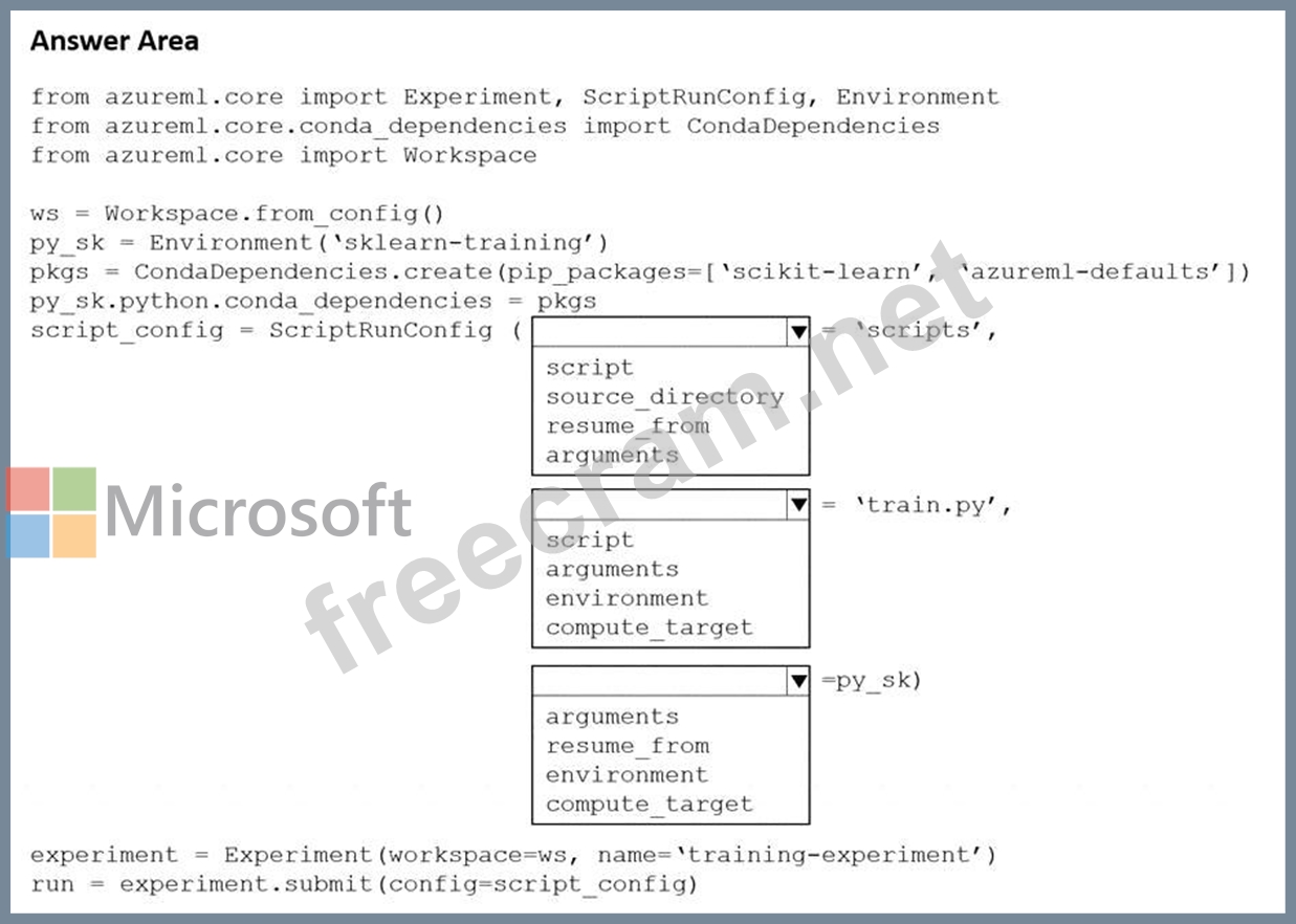 Question 134: You are preparing to use the Azure ML SDK to run an experime...