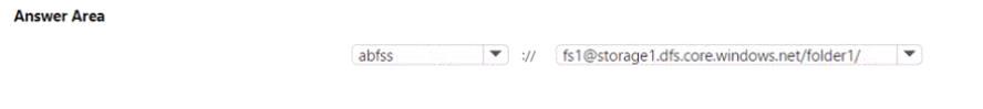 You create an Azure Data Lake Storage Gen2 stowage account named storage1 containing a file system named fsi and a folder named folder1. The contents of folder1 must be accessible from jobs on compute targets in the Azure Machine Learning workspace. You need to construct a URl to reference folder1. How should you construct the URI? To answer, select the appropriate options in the answer area. NOTE: Each correct selection is worth one point.