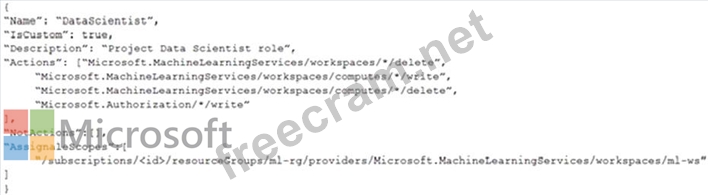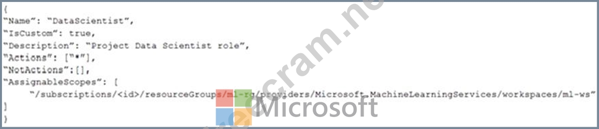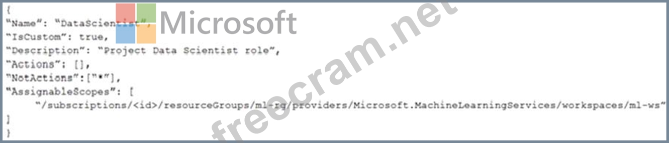 You need to create a JSON file for the DataScientist role in the Azure Machine Learning workspace.