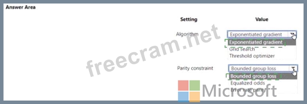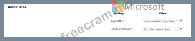 Which algorithm and panty constraint should you use? To answer, select the appropriate options in the answer area. NOTE: Each correct selection is worth one point.