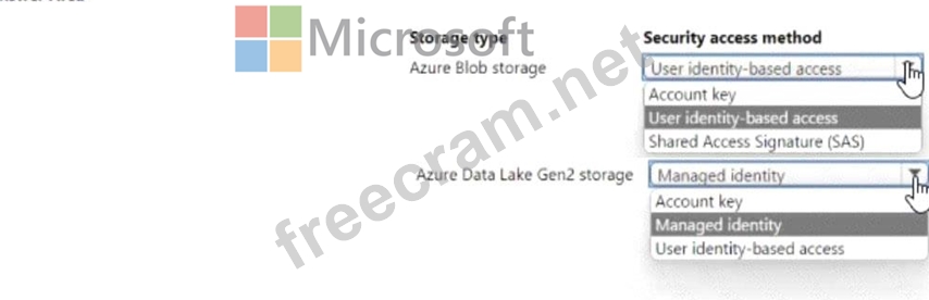 You need to configure a security access method used to register the Azure Blob and Azure Data lake Gen?