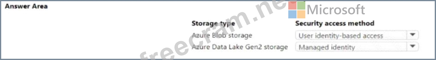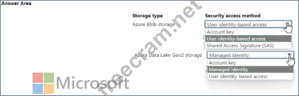storage in workspace1. Which security access method should you configure? To answer, select the appropriate options in the answers area.