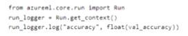 You use the following training script m Python to log an accuracy value.