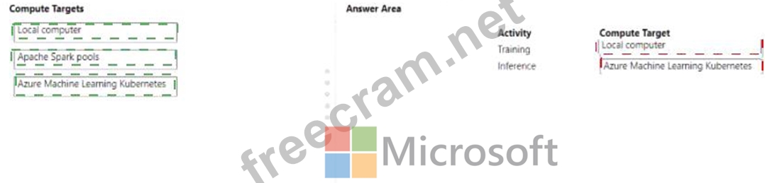 You must train and deploy the solution by using a compute target. The compute target must meet the following requirements: