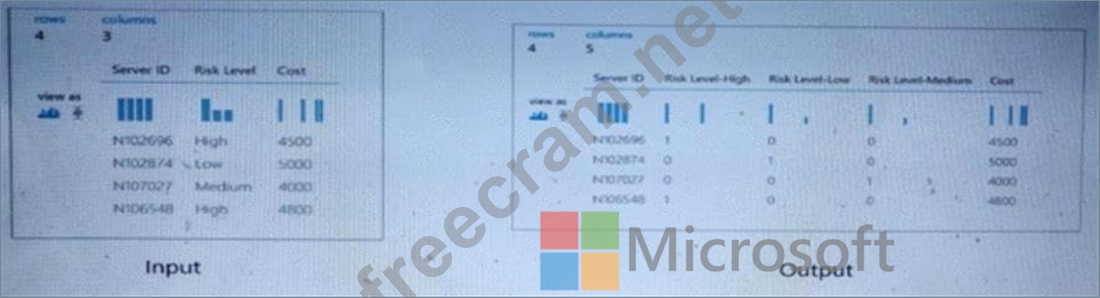 You are developing a machine learning, experiment by using Azure. The following images show the input and output of a machine learning experiment: