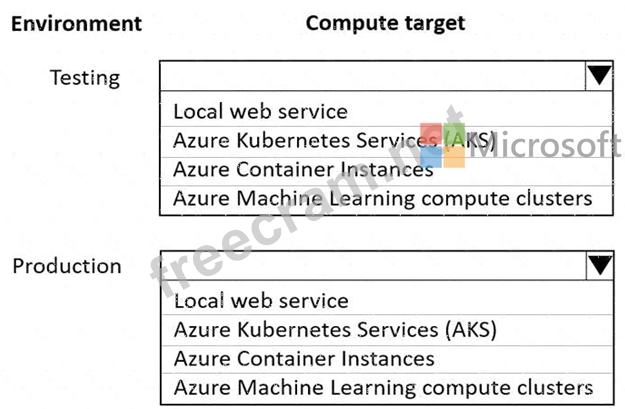 Which compute targets should you use? To answer, select the appropriate options in the answer area.