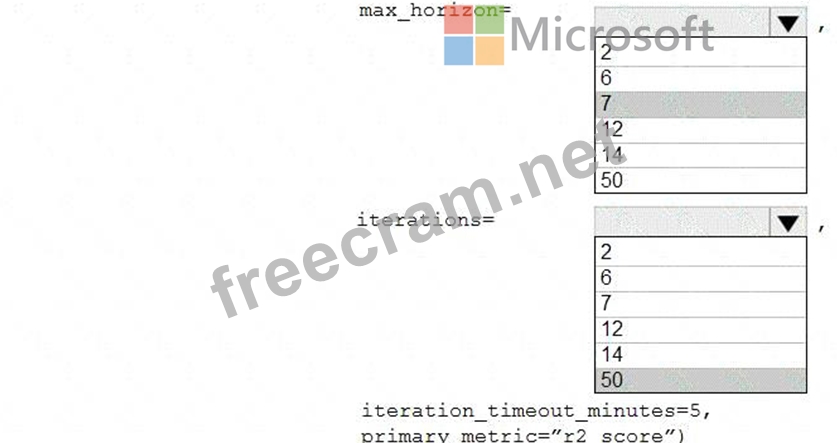 "For the initial round of training, you want to train a maximum of 50 different models." Iterations: The total number of different algorithm and parameter combinations to test during an automated ML experiment.