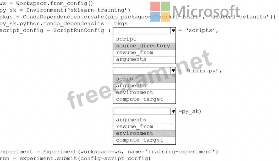 How should you complete the code segment? To answer, select the appropriate options in the answer area.
