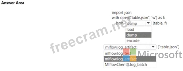 How should you complete the code? To answer, select the appropriate options in the answer area.