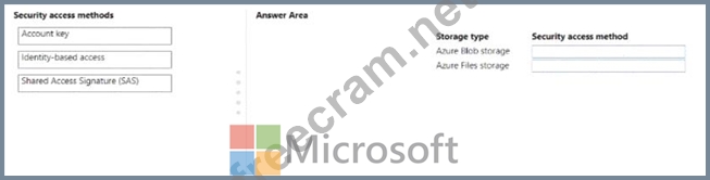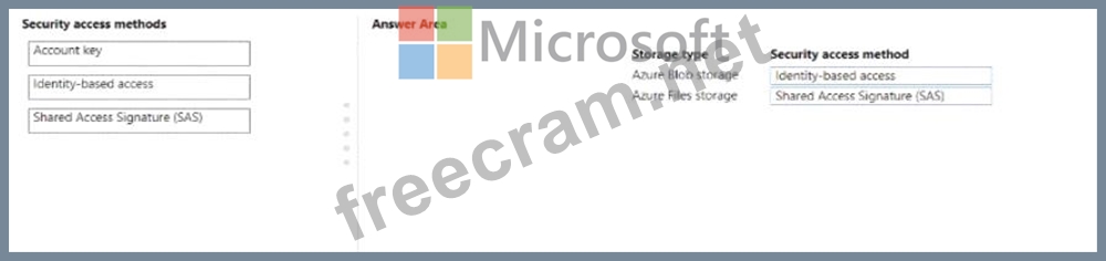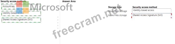 You need to configure a security access method used to register the Azure Blob and azure files storage in workspace1.
