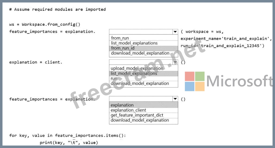1. client = ExplanationClient.from_run_id() (from_run requires just one parameter and three are being passed here)