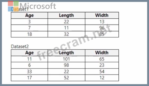 You use Azure Machine Learning designer to load the following datasets into an experiment: