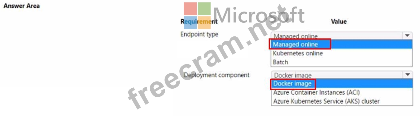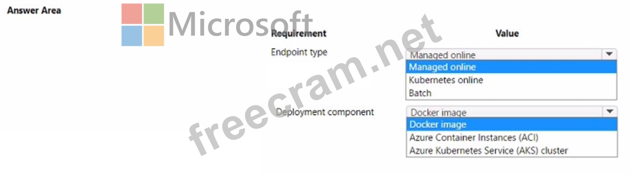 You create an Azure Machine Learning model to include model files and a scorning script. You must deploy the model. The deployment solution must meet the following requirements: