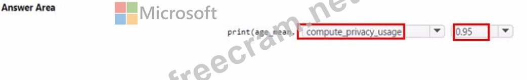 You create an Azure Machine Learning workspace and a dataset. The dataset includes age values for a large group of diabetes patients. You use the dp.mean function from the SmartNoise library to calculate the mean of the age value. You store the value in a variable named age.mean.