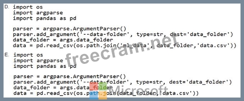 Question 36: You are building an experiment using the Azure Machine Learn...
