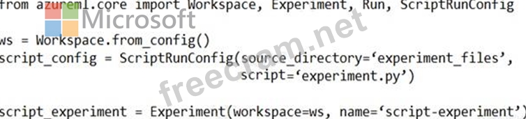 Question 48: You are preparing to use the Azure ML SDK to run an experime...
